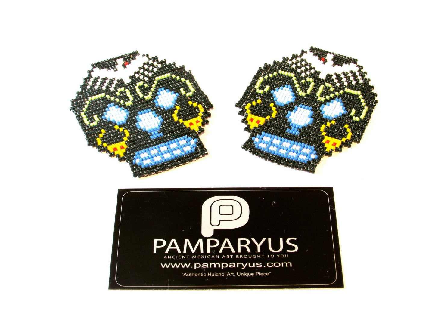 Parches en forma de cráneo, puedes ponerlos en donde tu quieras dale un toque de color a tu pantalón a tu chamarra o donde mas te guste. Realizado por artesanos huicholes con chaquira de cristal.