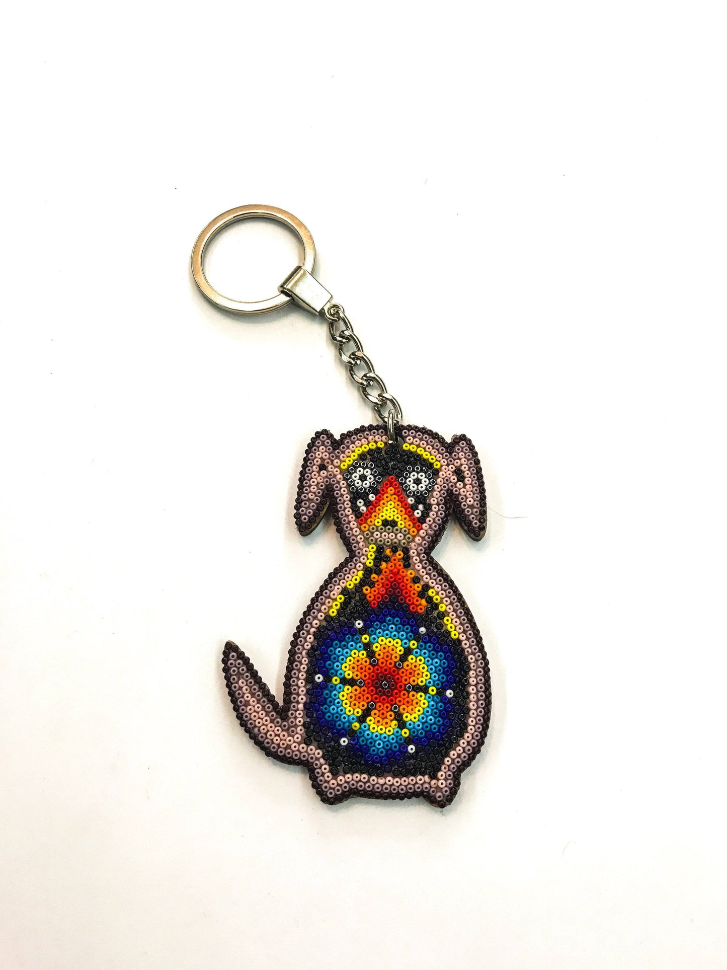 Llavero hecho en madera MDF con arte Huichol. Argolla de metal para colgado. Son diseños únicos con arte 100% Mexicano. Están realizados con Mini Chaquira checa de cristal