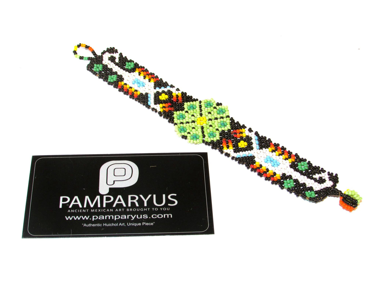 Pulsera realizada por artesanos huicholes con chaquira de cristal.