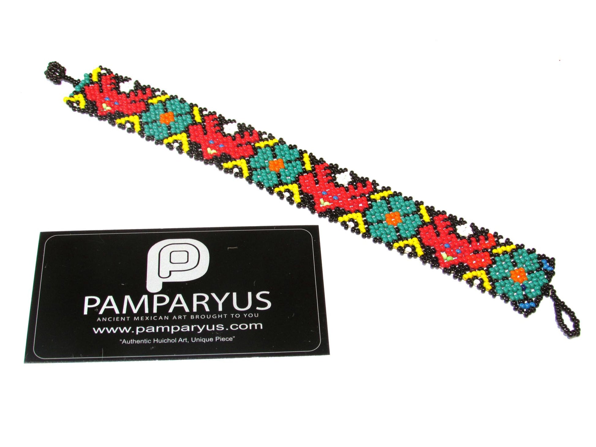 Pulsera realizada por artesanos huicholes con chaquira de cristal.